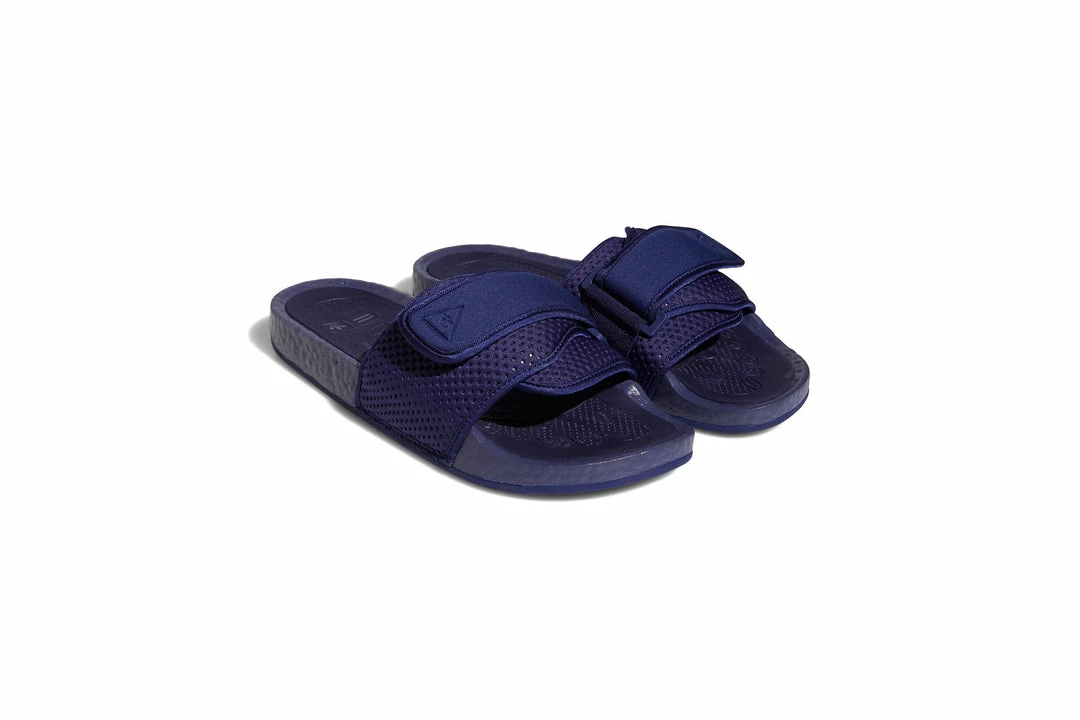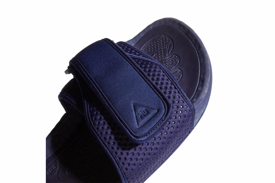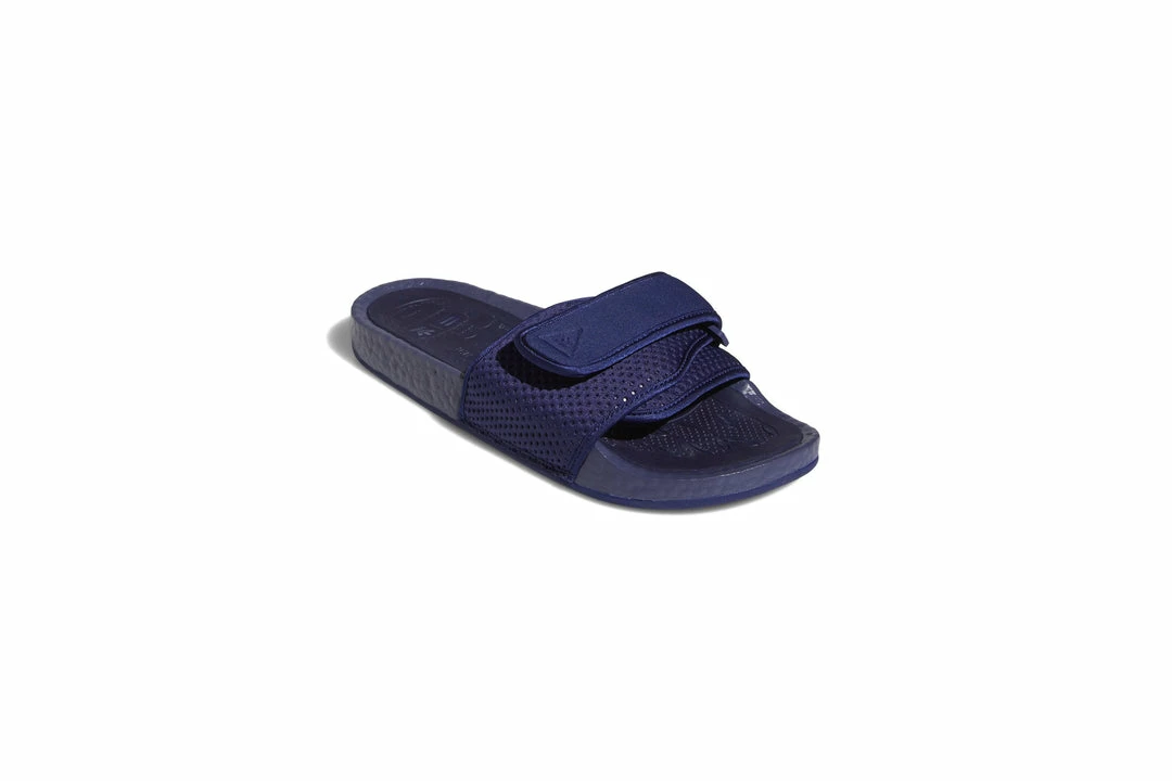 Pharrell Williams brings his creative vision to adidas’ adilette slide, introducing stylistic and technical updates to the iconic summertime essential. Seeking to advance a design language built around comfort as the ultimate luxury, the PW BOOST SLIDE silhouette strips back the layers to champion simplicity at its finest. Designed with the adilette’s original visual codes as a blueprint, the PW BOOST SLIDE style takes comfort to the next level. Advancing a forward thinking vision of summertime footwear, the slip-on silhouette features a padded synthetic upper matched with an adjustable strap to ensure a perfect fit. Bringing unparalleled comfort to the midsole, the style incorporates adidas’ BOOST technology. Finally, rounding off the look is a molded Hu Anatomical sockliner.