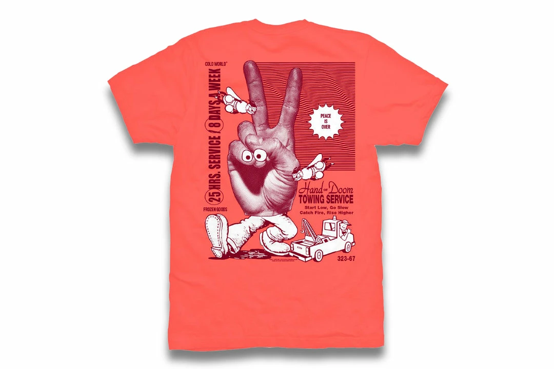 100% Cotton, Neon Orange / Red T-Shirt with Silk Screened Front & Back Graphics