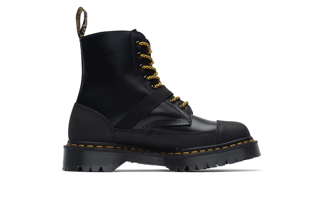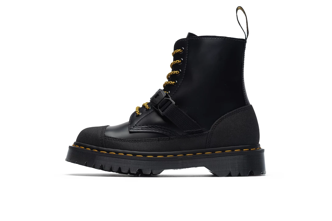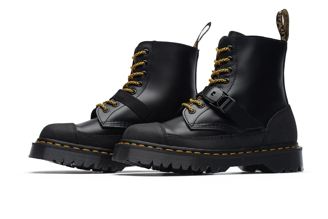 Our original Wollaston factory stands by tried-and-tested shoemaking methods. But it also looks to push DM’s forward with new techniques, innovative materials and cutting-edge designs. These new boots are built from a mix of Smooth leather and TecTuff, an abrasion, water, stain and scuff-resistant material that can last up to 10x longer than traditional leather. Set on a double-height Bex sole, they’re lined with leather and reinforced with our signature yellow welt stitching. The Made in England boots are detailed with Duraflex magnetic buckle closures and two sets of giraffe laces in Black and Grey or Black and Yellow.