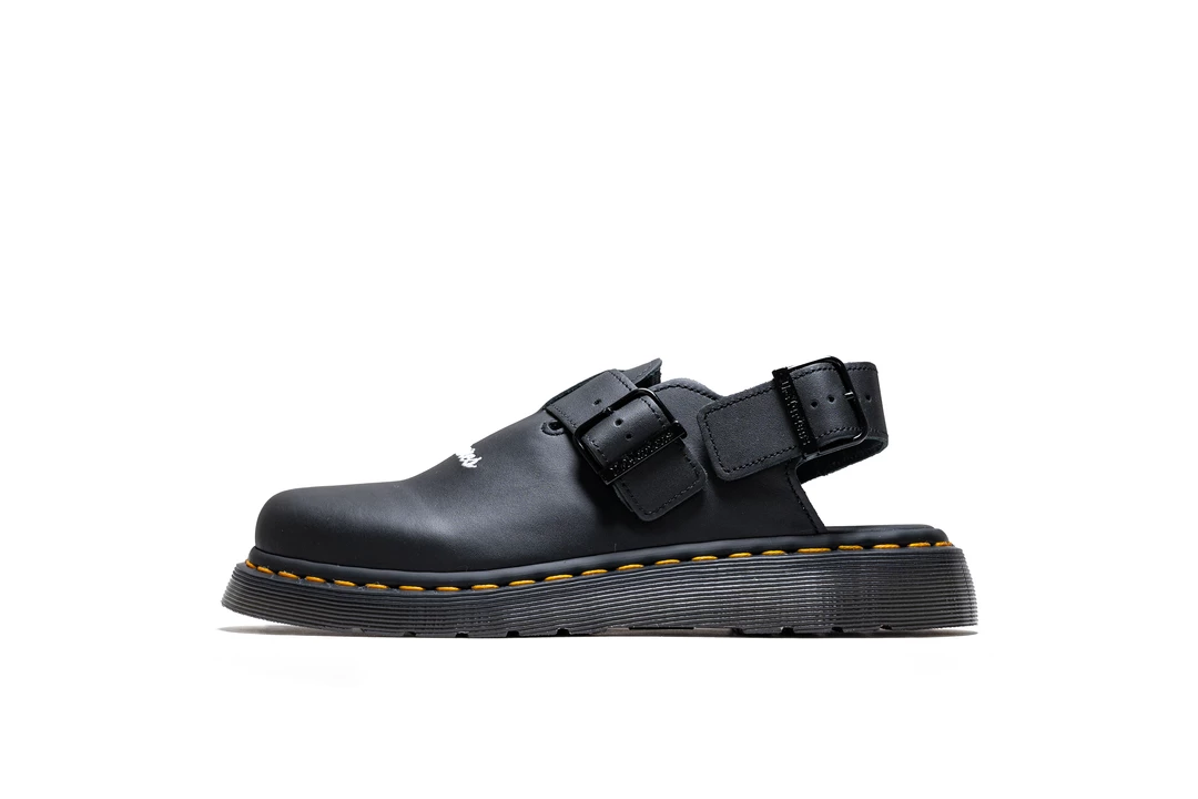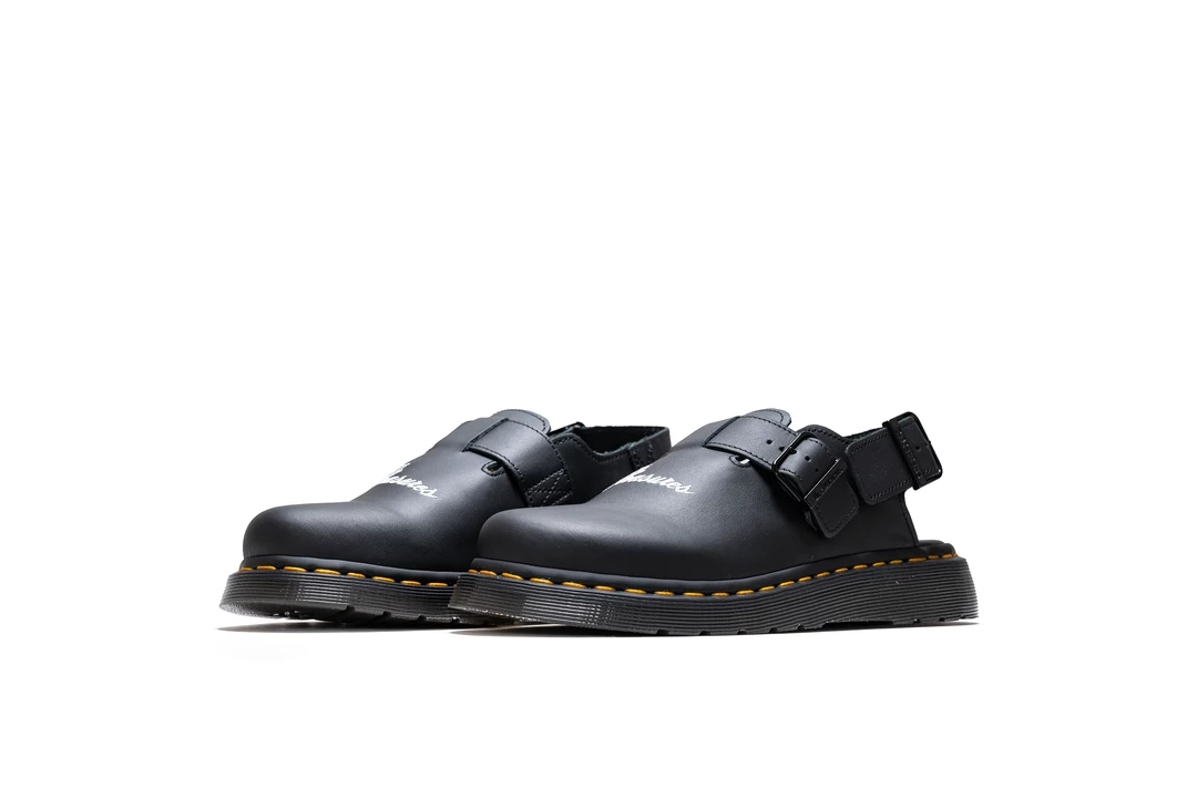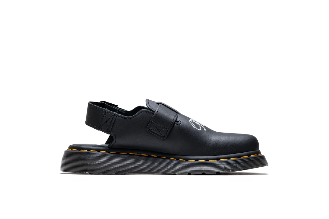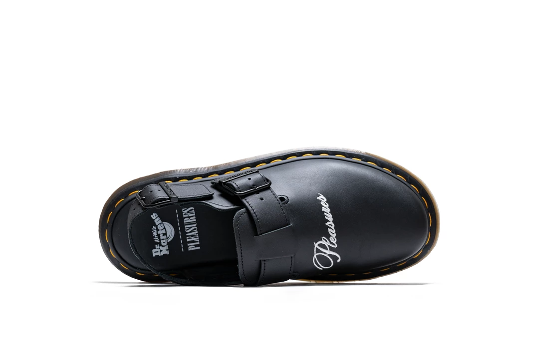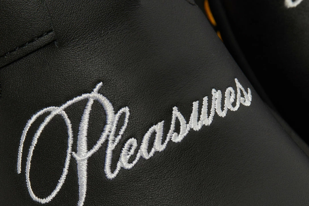 Celebrating the passions and influences of PLEASURES co-founders Alex and Vlad. The Jorge mule reworked through the lens of 90s DIY grunge and zine culture. Built from soft yet strong Nappa black leather. Embroidered with white PLEASURES script. Set on a Smoke Shore sole, each pair is finished with a soft dual brand leather footbed. Extreme comfort meets DIY attitude.