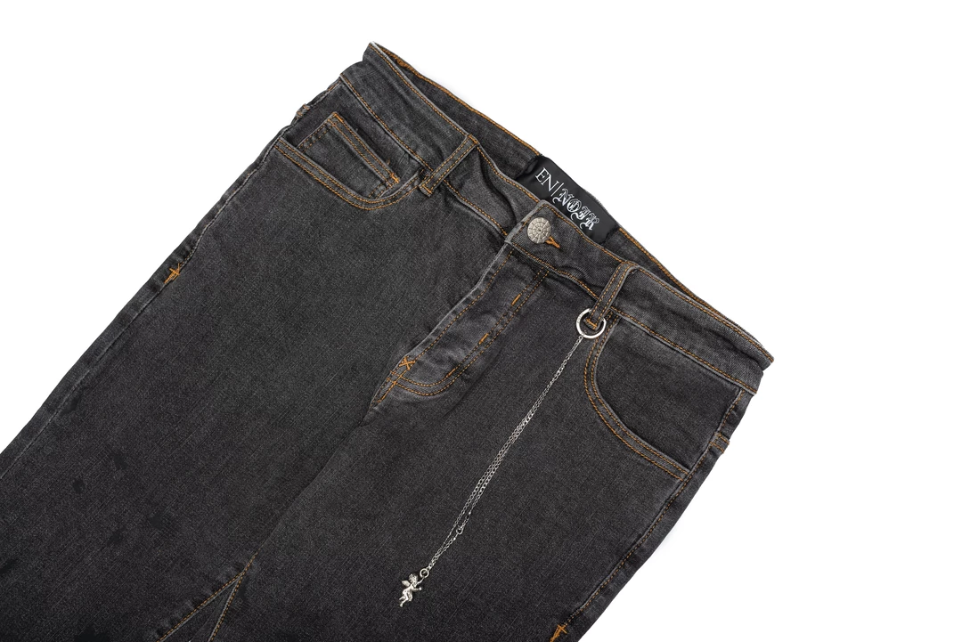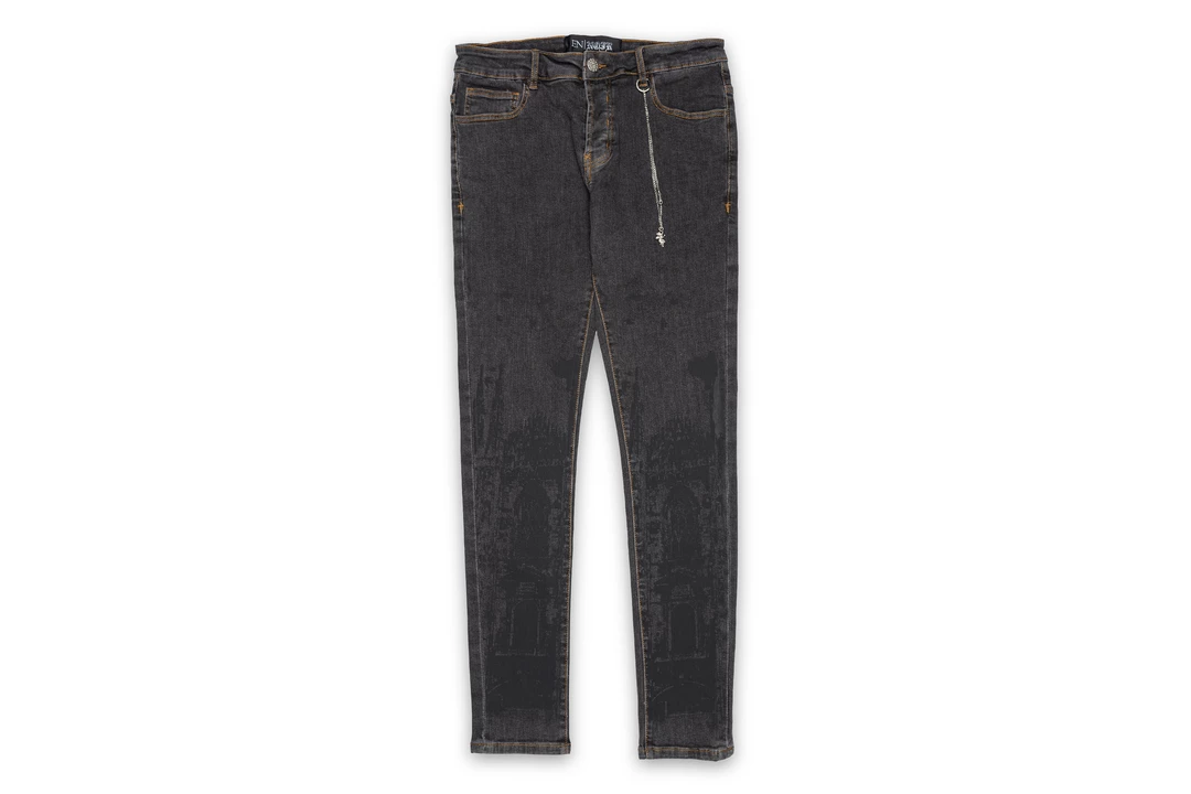 En Noir presents the Hendrix Cathedral Denim. This pair of jeans features a unique print of the silhouette of the Milan Cathedral. It also comes with the Fallen Angel Removable Choker for style.