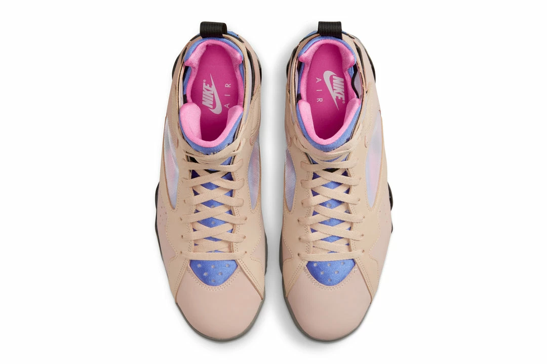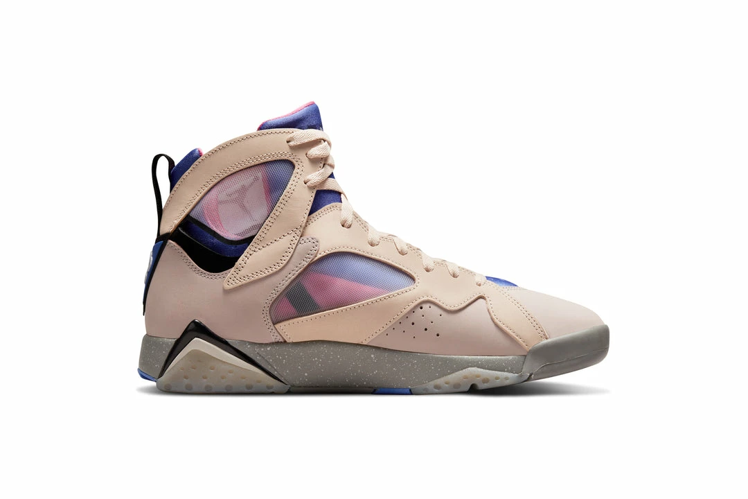 Mixing futuristic intent with centuries-old precious gemstones, the Air Jordan 7 “Sapphire” is here to celebrate the 30th anniversary of the title-winning silhouette. While a neutral Shimmer leather upper serves as the base, its colors work to accentuate the Sapphire underlays lurking beneath the semi-transparent panels in the midfoot and collar. Get a sneak peek into the future of Jordan Brand style with an OG sneaker featuring a uniquely colorful and luxurious pathway forward.