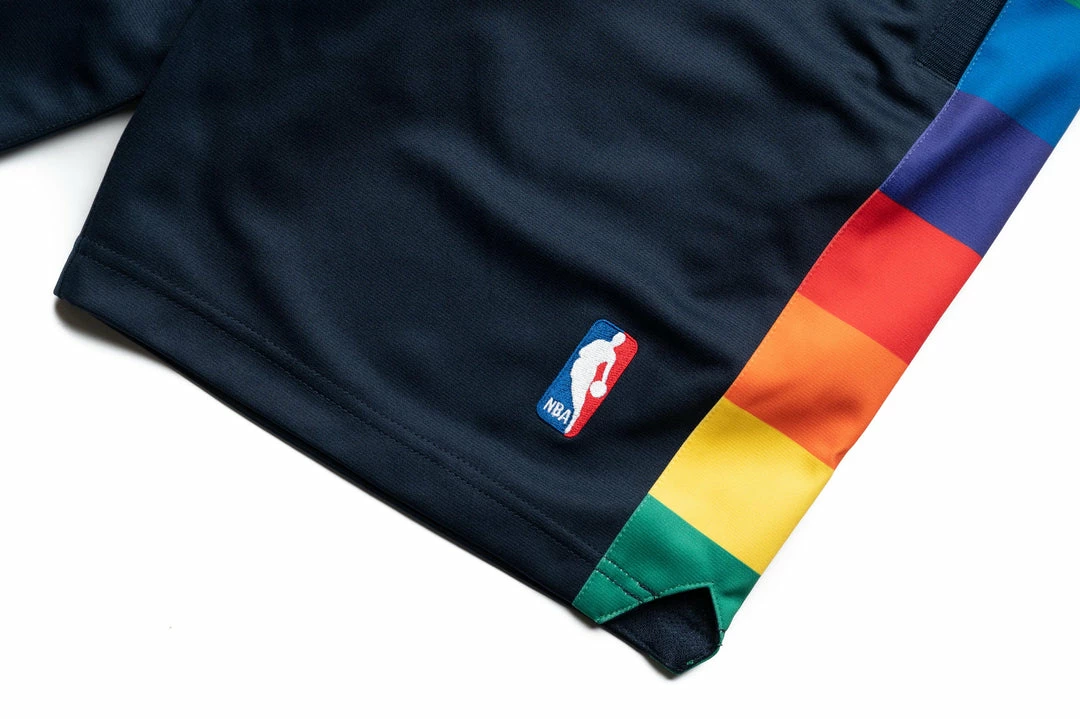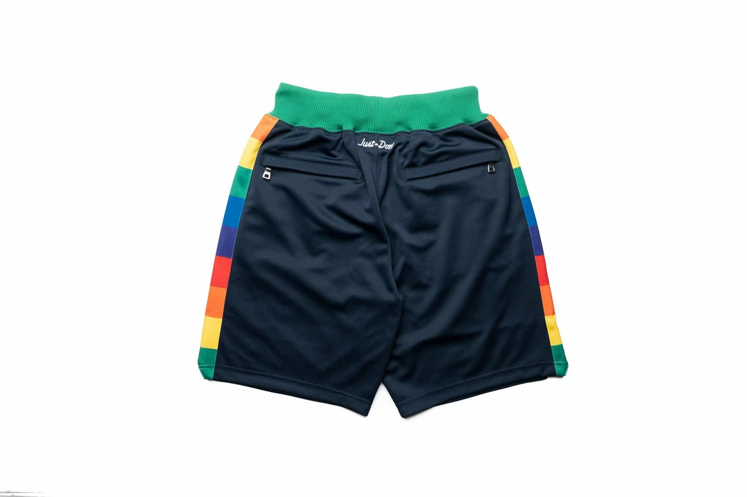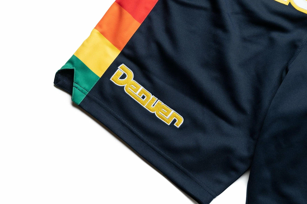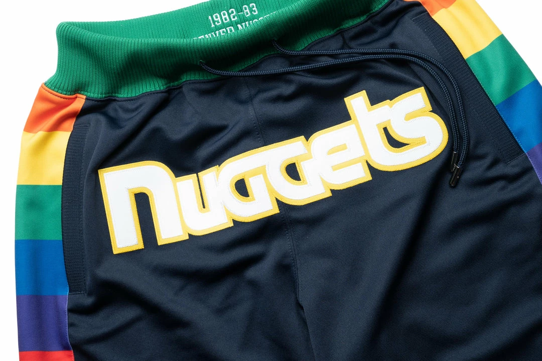 100% double knit short with knit rib waist band. “Nuggets” embroidered twill. Silver cord tips. Lampo zippers.