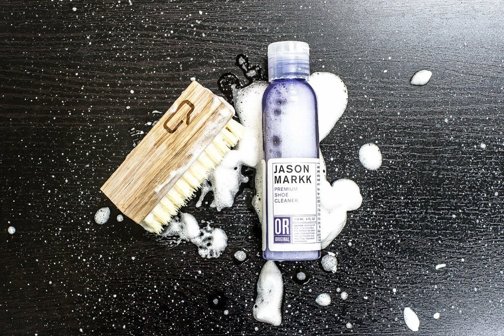 Complete set. Includes 4 oz. Premium Shoe Cleaner and Standard Shoe Cleaning Brush packaged in Jason Markk fresh pouch.