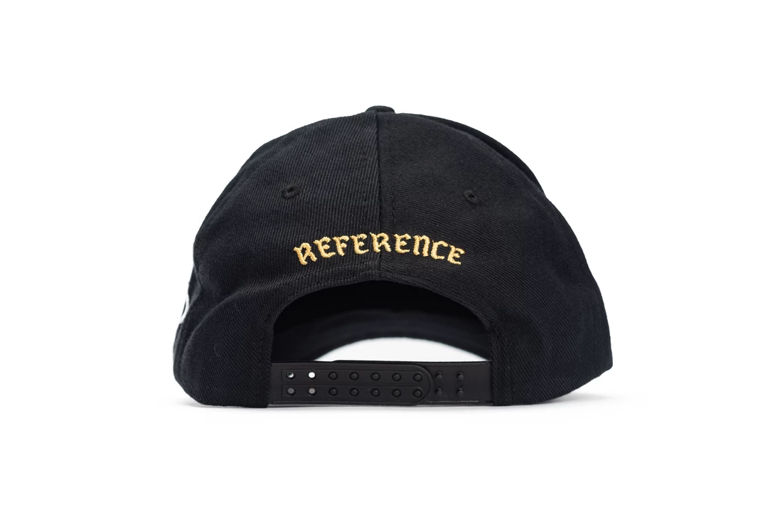 - Gold Thread “REFERENCE” Embroidery Arched Over Back of Hat