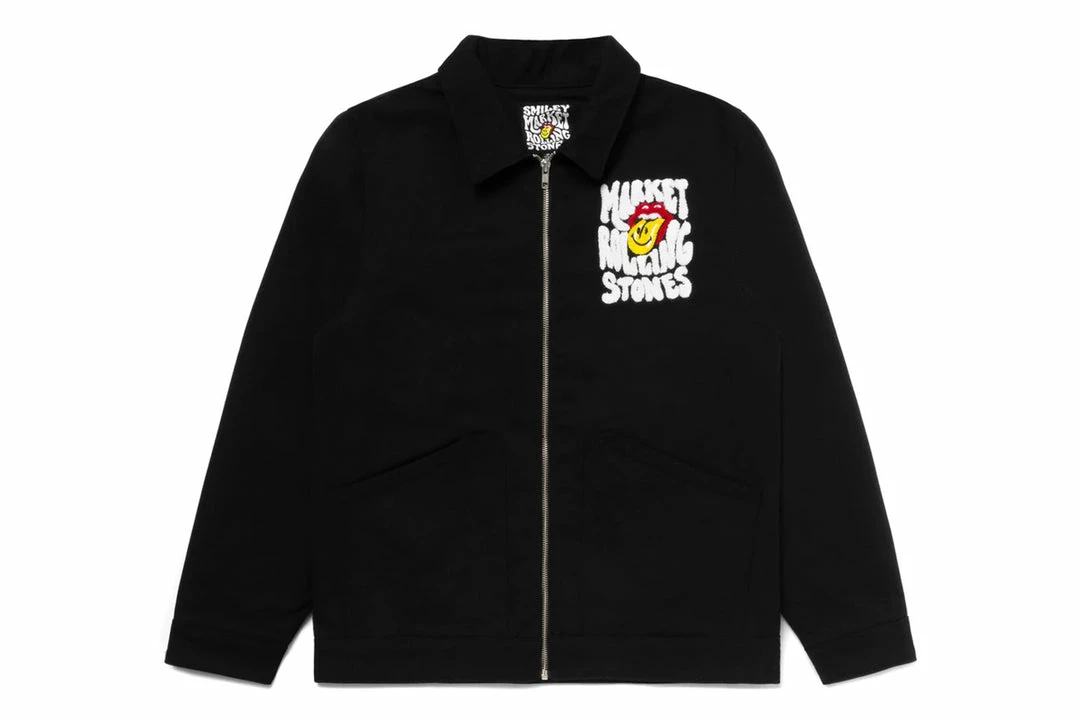 Market X Rolling Stones Smiley Chenille Garage Jacket – Black