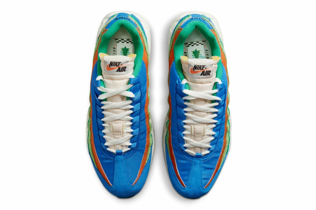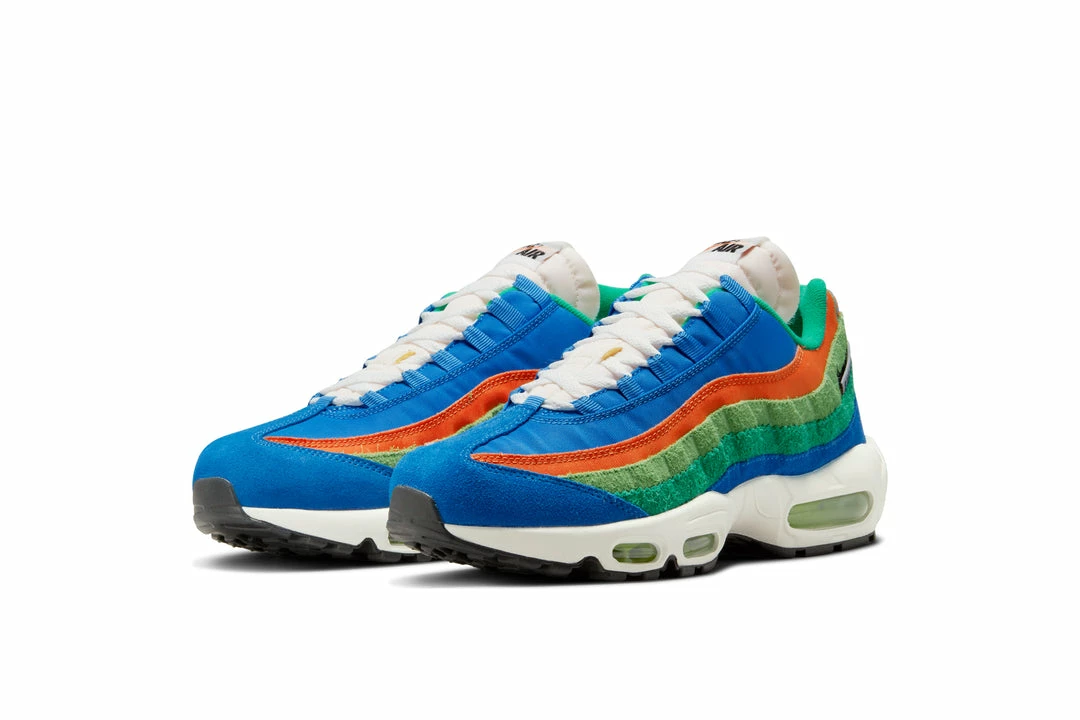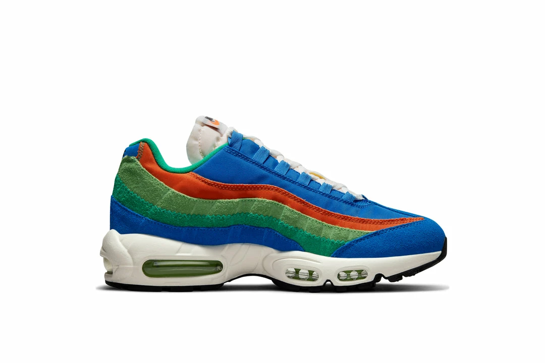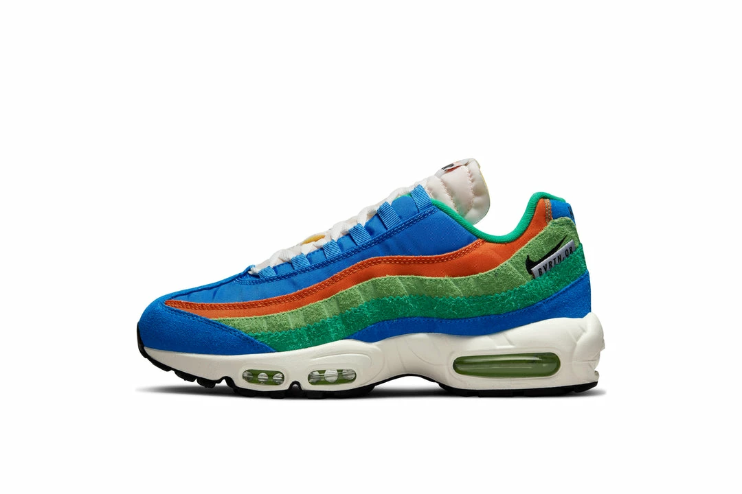 The “Air Max Running Club” is Nike’s fictional track team, bringing ’70s track inspiration to streetwear staples. Mixing retro fun with new flash, the Nike Air Max 95 SE includes the original’s iconic side panels in era-echoing materials. Athletics West-inspired branding celebrates sport. Visible Air cushioning adds comfort to your journey.