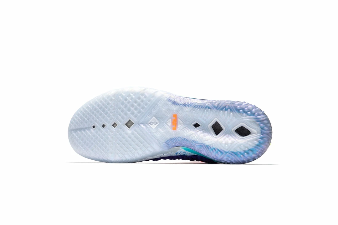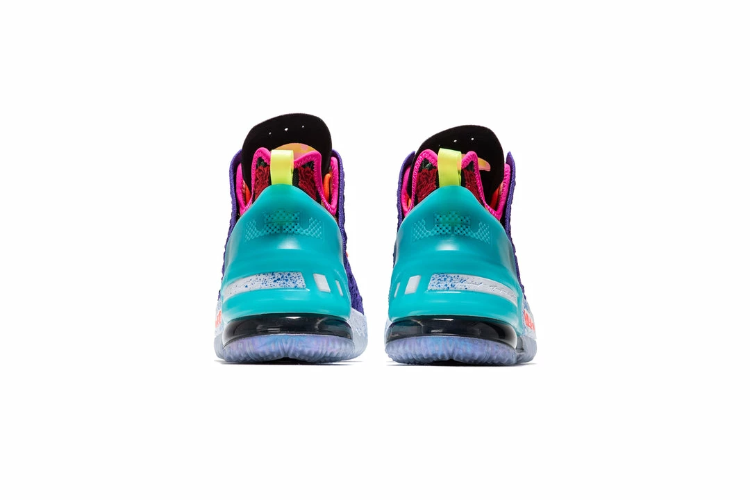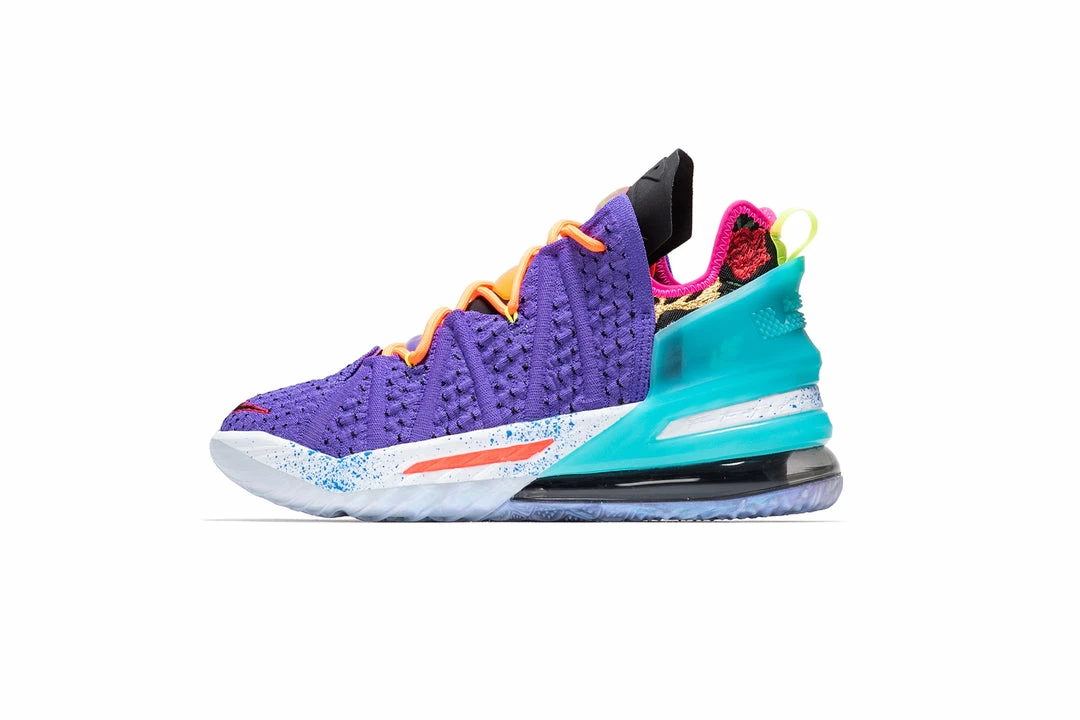 When LeBron accelerates down the court, he produces tremendous force. The LeBron 18 is designed to harness his abilities while helping with the stress he puts on his body. Combined cushioning underfoot helps him to use his power for unstoppable bursts of speed. This eclectic colorway combines hues from some of the most renowned colorways throughout the history of The King’s signature line.