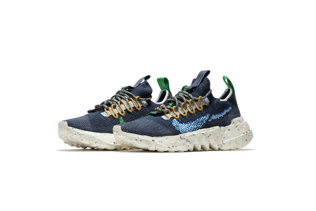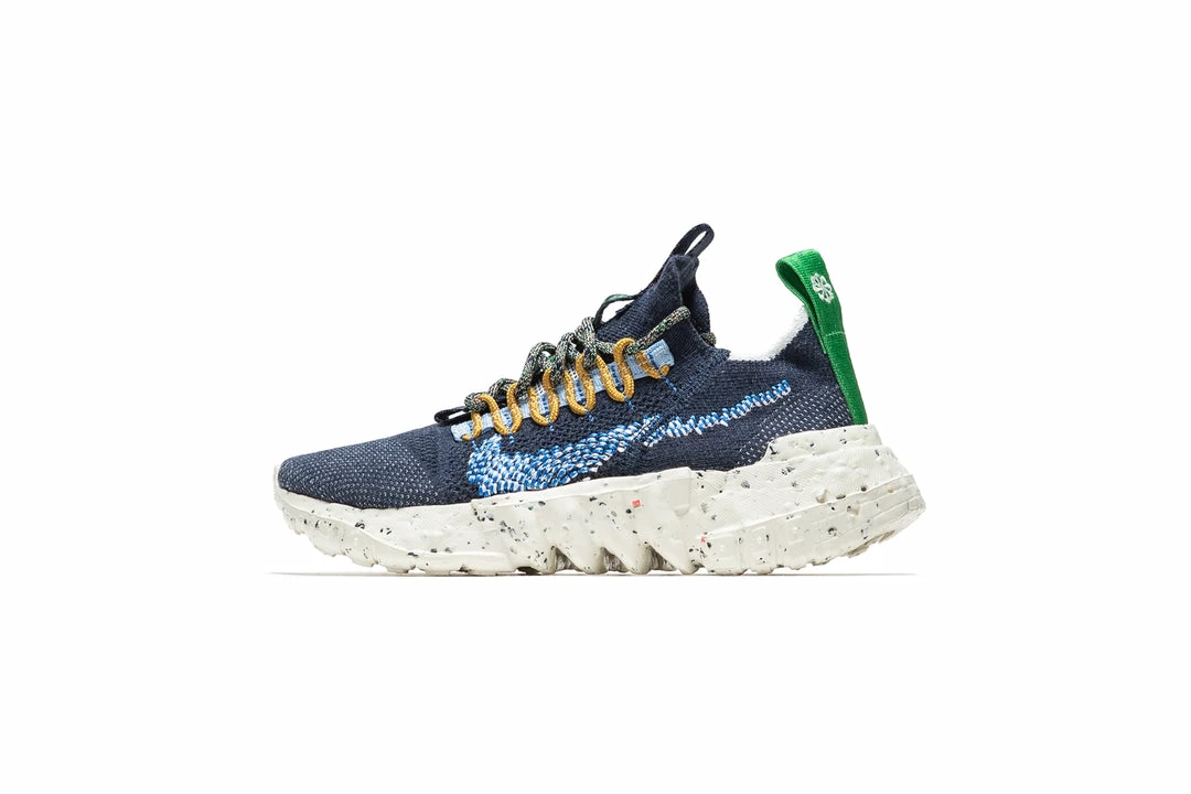Its ‘Space Waste Yarn’ upper includes about 85% recycled polyester made from recycled plastic bottles, t-shirts and yarn scraps. A soft, Crater Foam midsole combines Nike Grind with a blend of foams for stability and a unique aesthetic, while the shoe’s insole is made from ZoomX foam scraps, the same cushioning that creates the ultimate ride in Nike’s NEXT% running shoes.