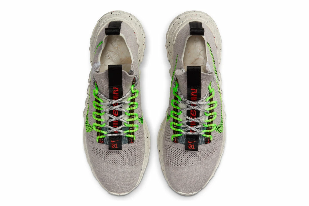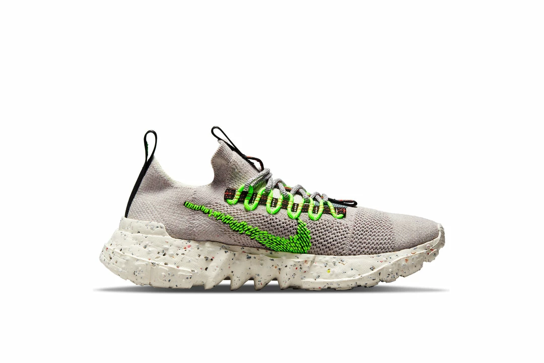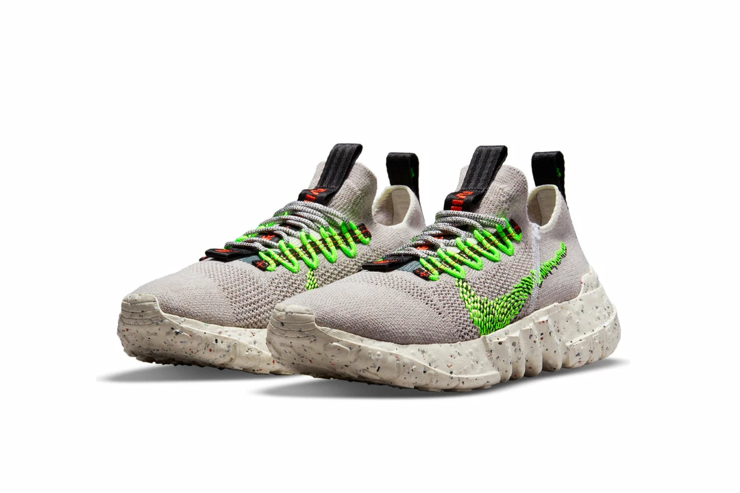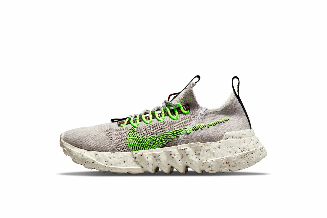Space Hippie is a story of trash transformed. Combining its airy Space Waste Yarn upper with its ultra-soft Crater foam midsole, the Space Hippie 01 delivers a futuristic look that feels as light as mountain air. The sleek, track-inspired silhouette also features an embroidered Swoosh design and unique lacing system that minimize the production process. Made from at least 50% recycled materials, it lets you lace up, salvage your world and live your dreams.