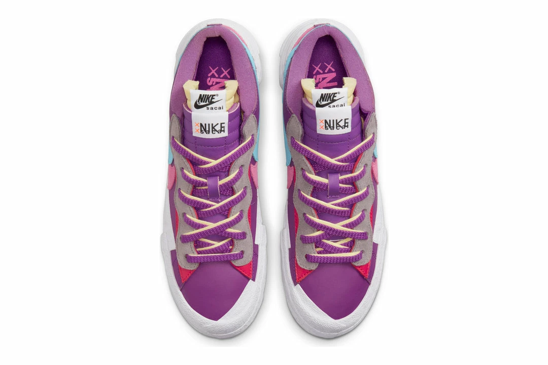 From famed designer Chitose Abe’s unifying vision to the colorful juxtapositions of artist KAWS, the vibrant Nike Blazer Low x sacai x KAWS is functional art. Wearable colors pair with rich upper materials, tongue overlays and co-branding to celebrate the continued partnership. To finish it off, KAWS “XX” reads boldly on the highly textured mudguard.