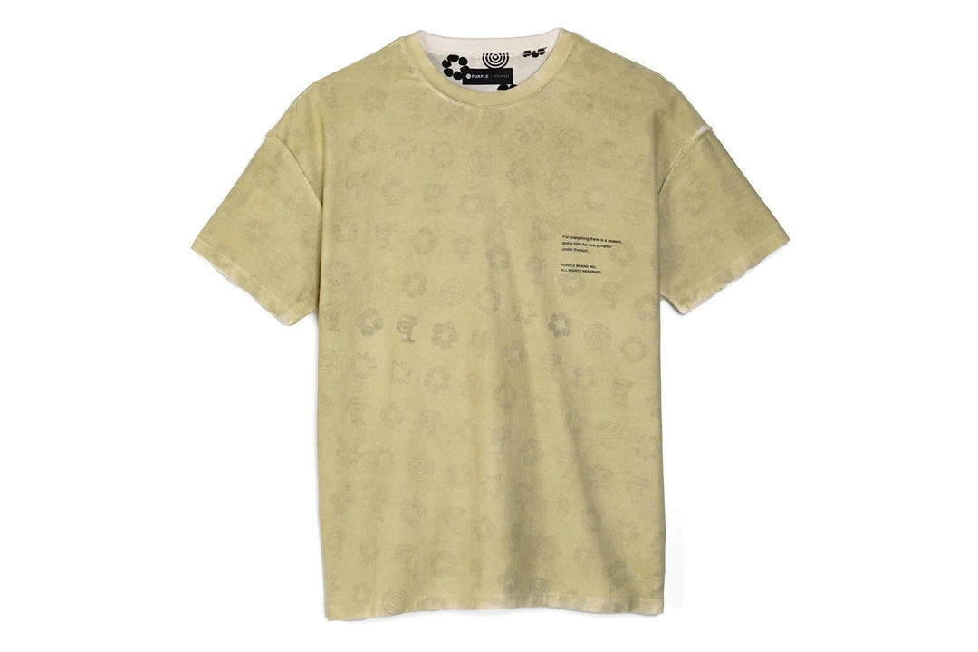 Made from the reverse side of a textured slub jersey, our t-shirt has exposed seams and a custom monogram print on the inside. Each piece is oversprayed with color by hand, so no two are the same.