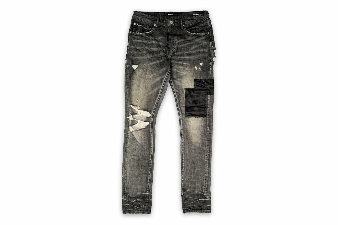 These jeans are cut from grey denim, with an oil wash for a one-of-a-kind effect, and a finished black twill patch. All jeans are finished individually by hand, so no two pieces are the same.