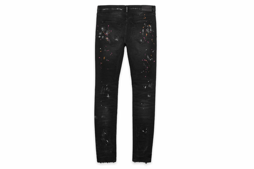 Item: Purple Brand Slim Fit Jeans – Black Multi Paint Repair