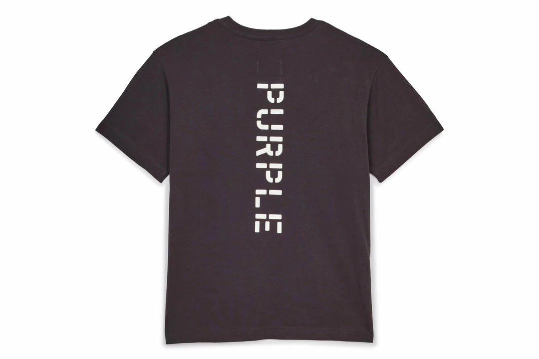 Made from 100% cotton textured jersey, this t-shirt has exposed collar seam and a graphic stencil logo on the left chest and back.
