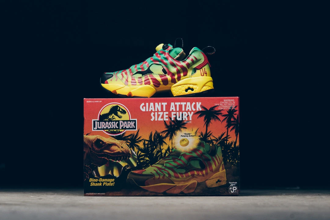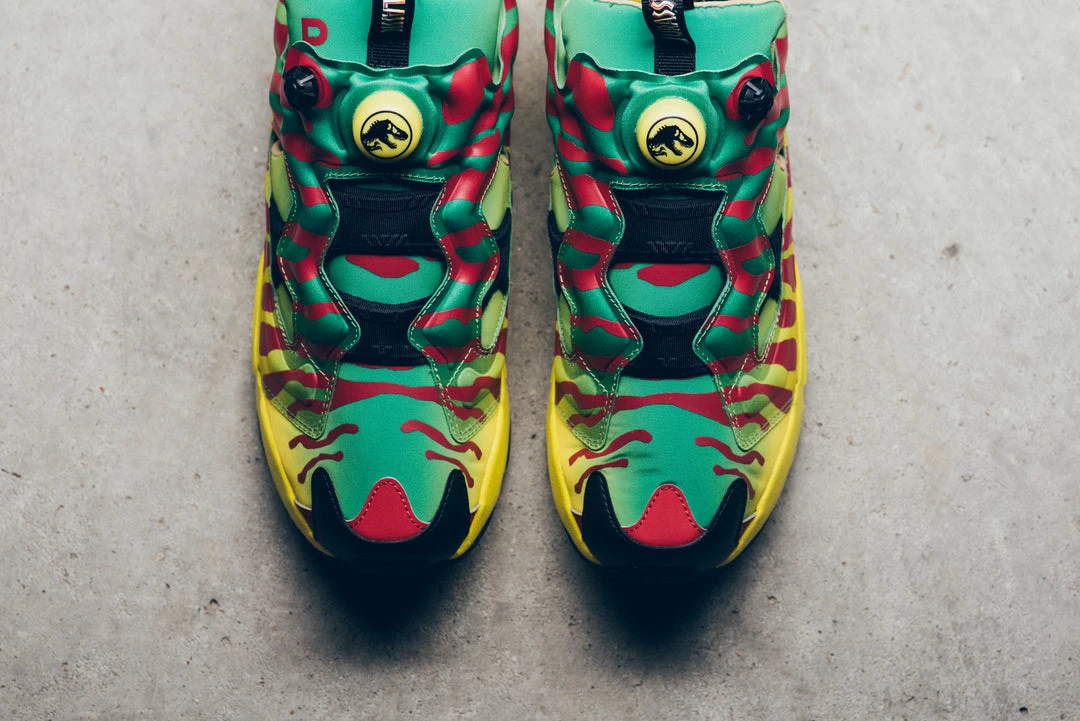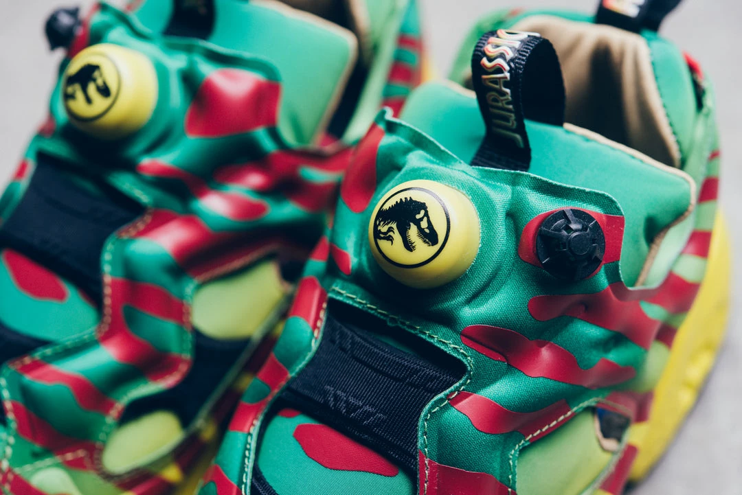 Take a tour of Jurassic Park. These Reebok shoes feature graphics and colors inspired by the tour vehicles seen in the movie franchise. A slip-on design and lightweight cushioning keep you comfortable on the go. The Pump provides a customizable fit and is decorated with the iconic T. rex.