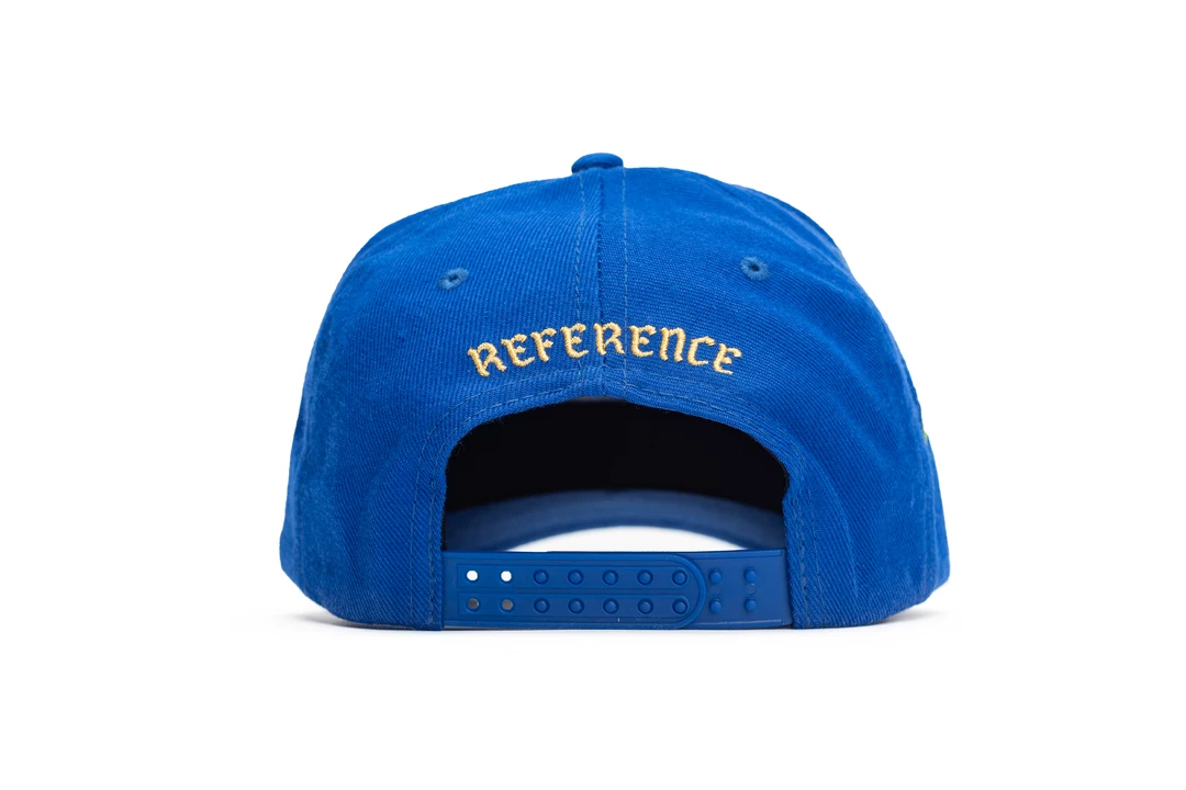 - Gold Thread “REFERENCE” Embroidery Arched Over Back of Hat