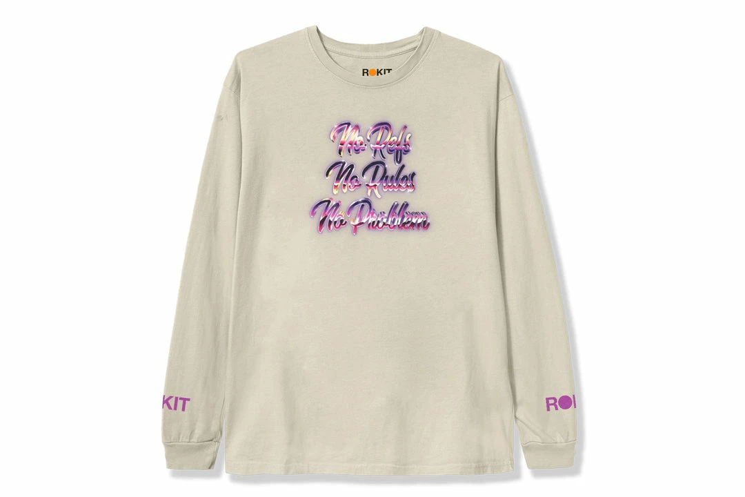 Rokit long sleeve t-shirt with seasonal artwork on the front and sleeve