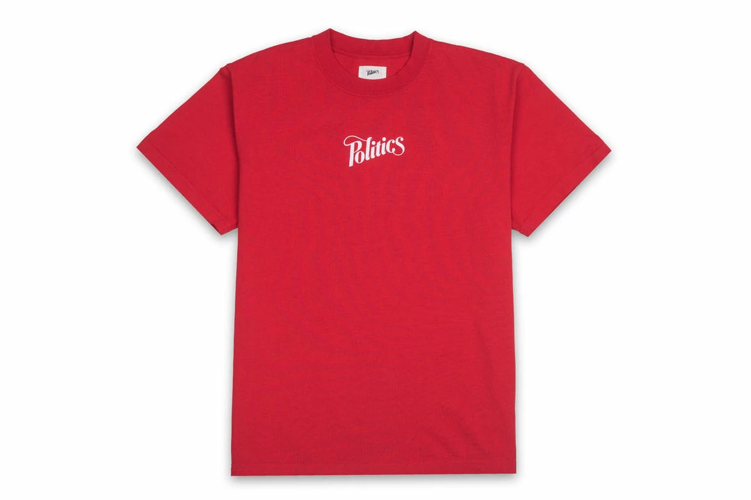 Screenprinted Politics script logo