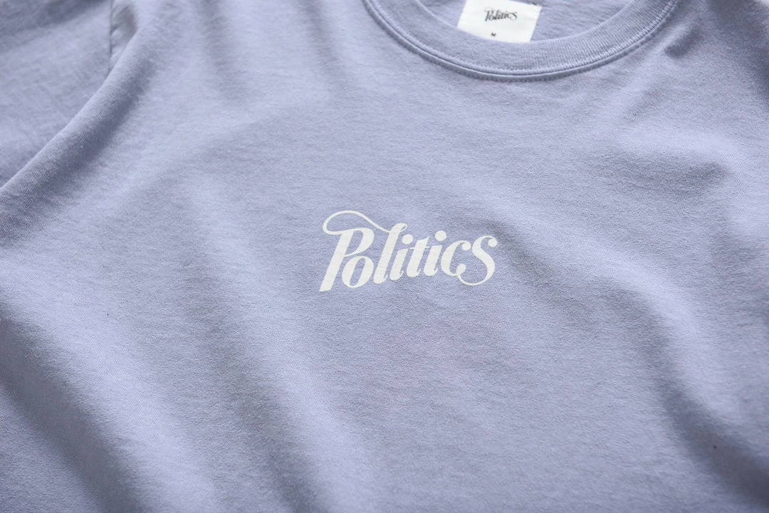 - Screen printed Politics script logo