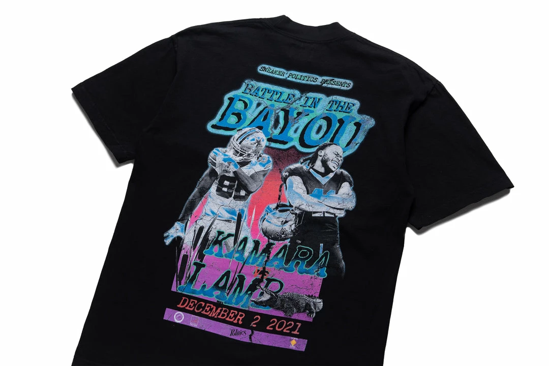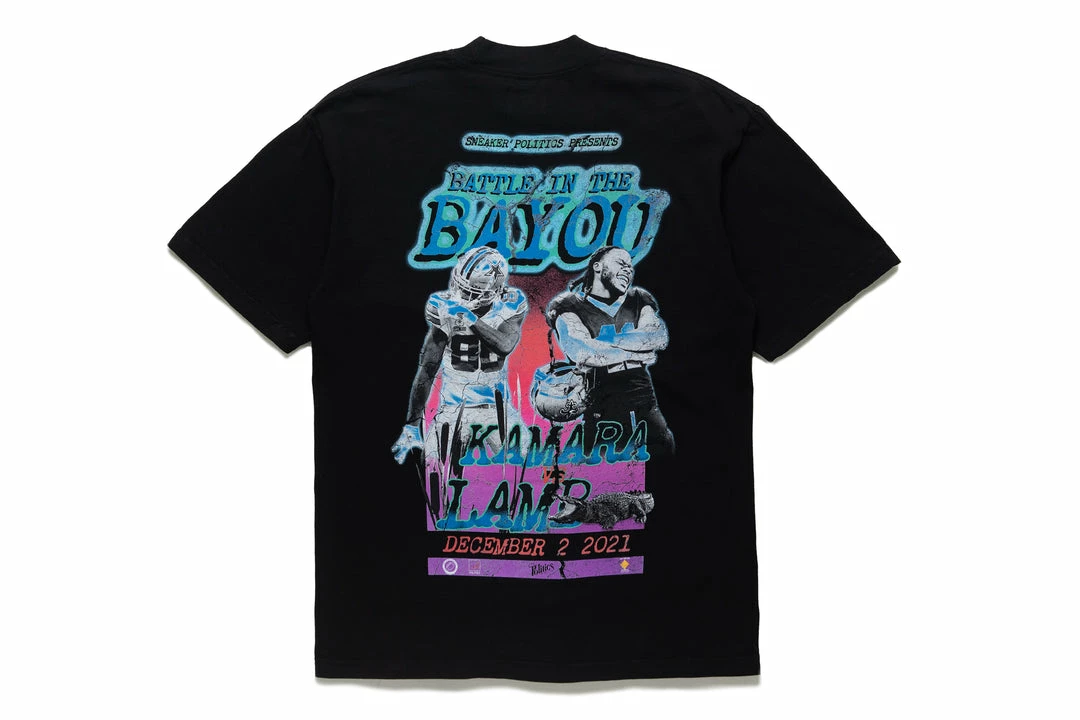 Sneaker Politics has partnered with CeeDee Lamb and Alvin Kamara to create a special Battle in the Bayou Collection for the New Orleans Saints and Dallas Cowboys game on December 2, 2021. This collection will consist of limited edition gameday tees and hats, and 100% of the sales will be donated to the charities of CeeDee’s and Alvin’s choosing.