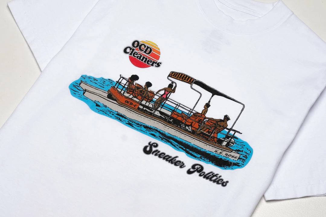This collaboration is one of a kind with the founder of OCD Cleaners, Isaiah having roots in Lafayette, LA the birthplace of Sneaker Politics, and is a full-circle moment for both brands. The capsule’s inspiration draws from elements that are unique to Louisiana’s richly diverse culture. Fishing, eating crawfish, and partying on a boat are all parts of growing up in Lafayette.
