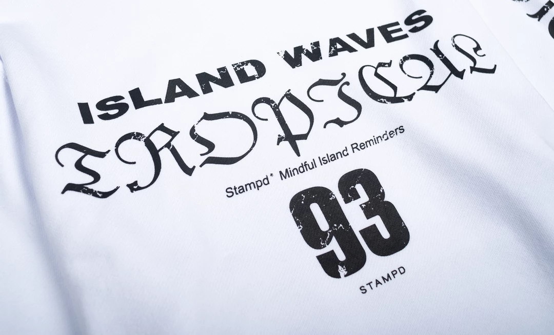 - Stampd® seasonal ‘Tropical Island Waves’ graphic printed at center chest, sleeves and center back.