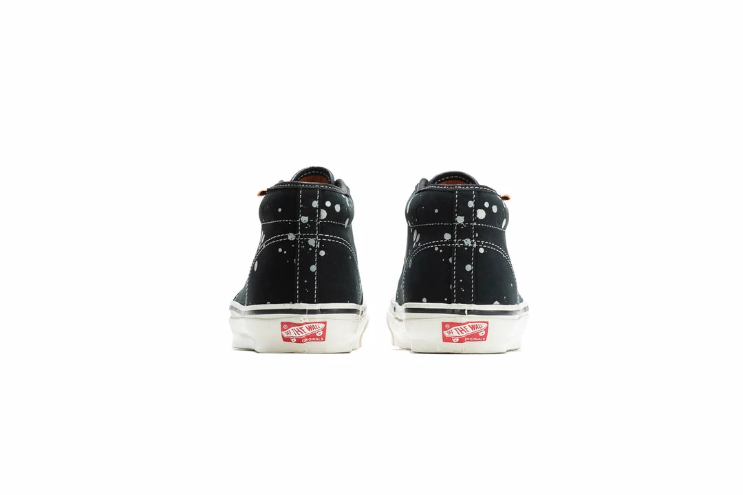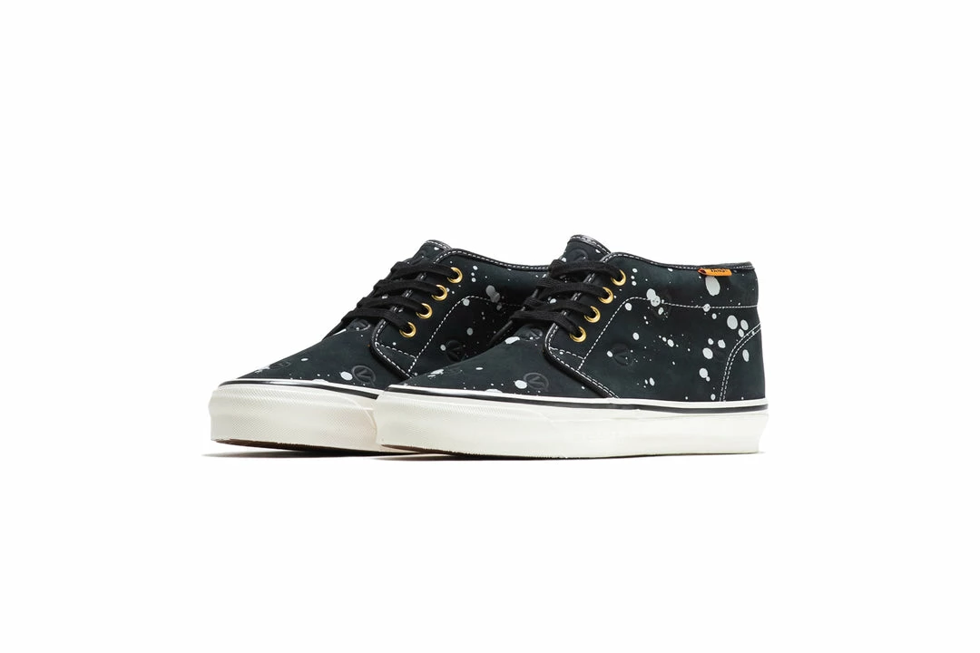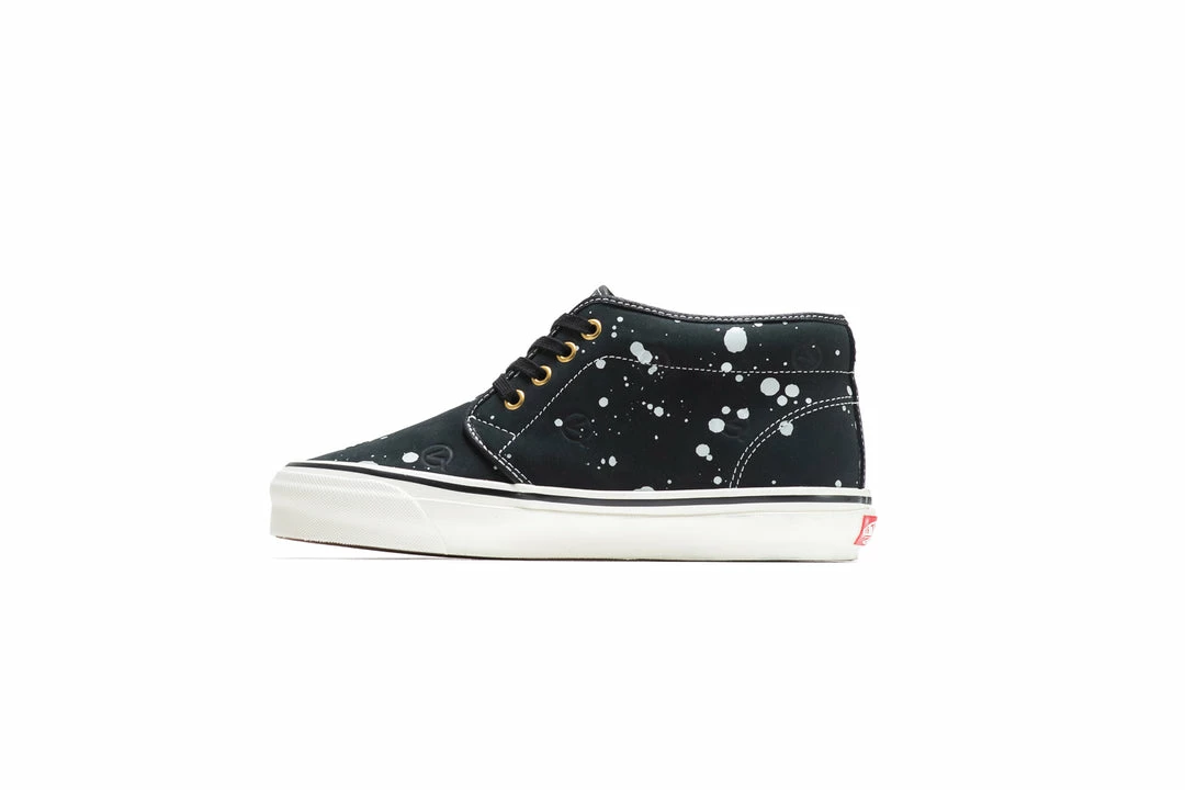 Vans Vault and LQQK Studio are back again with a second collaboration, this time, with a handful of shoes and apparel. The Brooklyn brand LQQK is based out of Brooklyn, NY and specializes in printing and creative designs. The Vans Vault x LQQK OG Chukka Boot LX in Splatter Black is composed of a clean canvas upper in black with white paint splatter graphics and tonal stitching to contrast. Vans’ signature waffle sole also sees an appearance. Pictured is the Vans Vault x LQQK OG Chukka Boot LX in Splatter Black.
