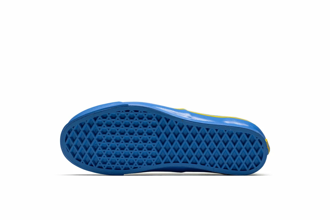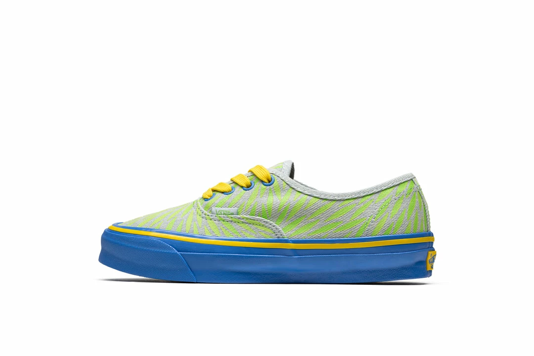 The artist for these Sk8-Hi is Julia Chiang. Julia Chiang is a multidisciplinary artist who lives and works in Brooklyn, New York. Sarah met Julia when she did an exhibition within the Colette gallery in 2012 and has admired her work ever since. Julia often works with paint and ceramics, creating detailed repetitious marks and forms that not only reveal but celebrate imperfection. For her capsule collection, Julia imagined how they would live within the real world – how they would sink into sand, dip into water, and be worn on the streets. Julia’s collection includes an OG Authentic LX for adults and a matching Authentic for kids which feature her painting atop a washed denim upper. Both pairs include a blue outsole along with a yellow foxing stripe and yellow laces.
