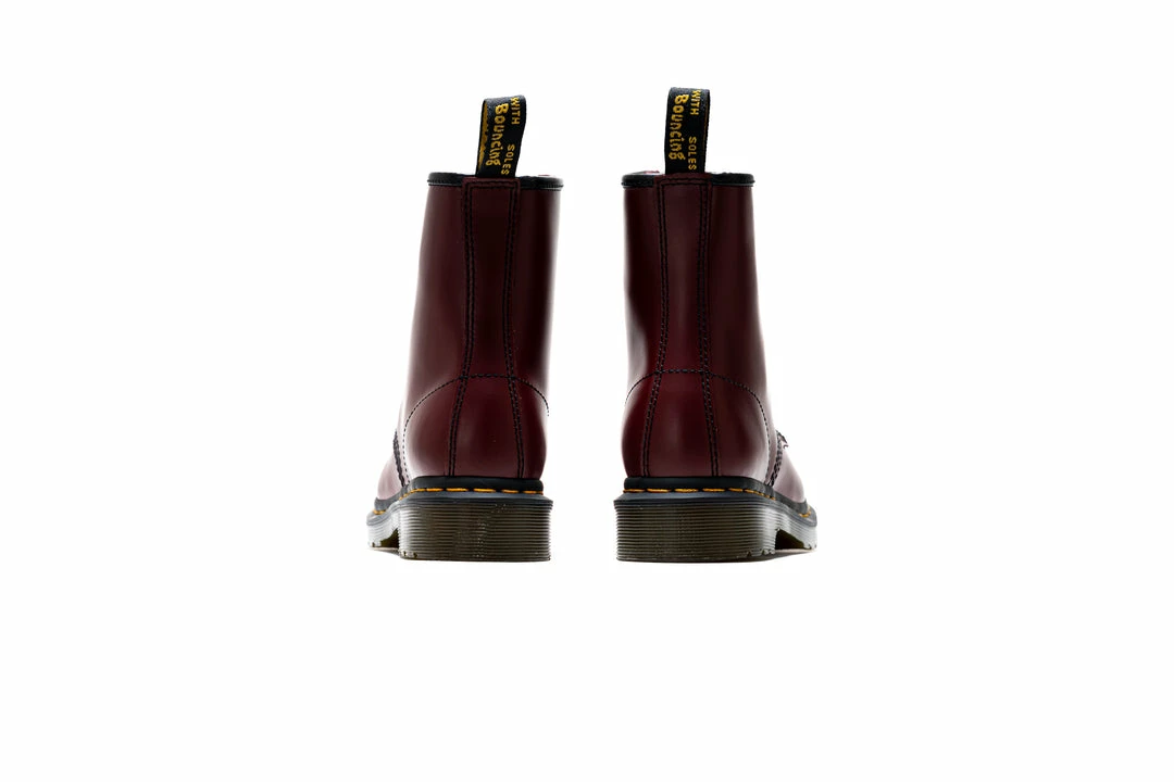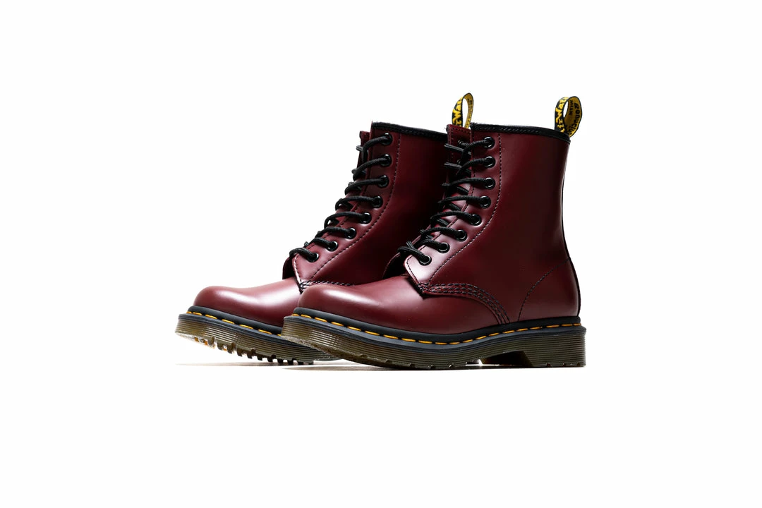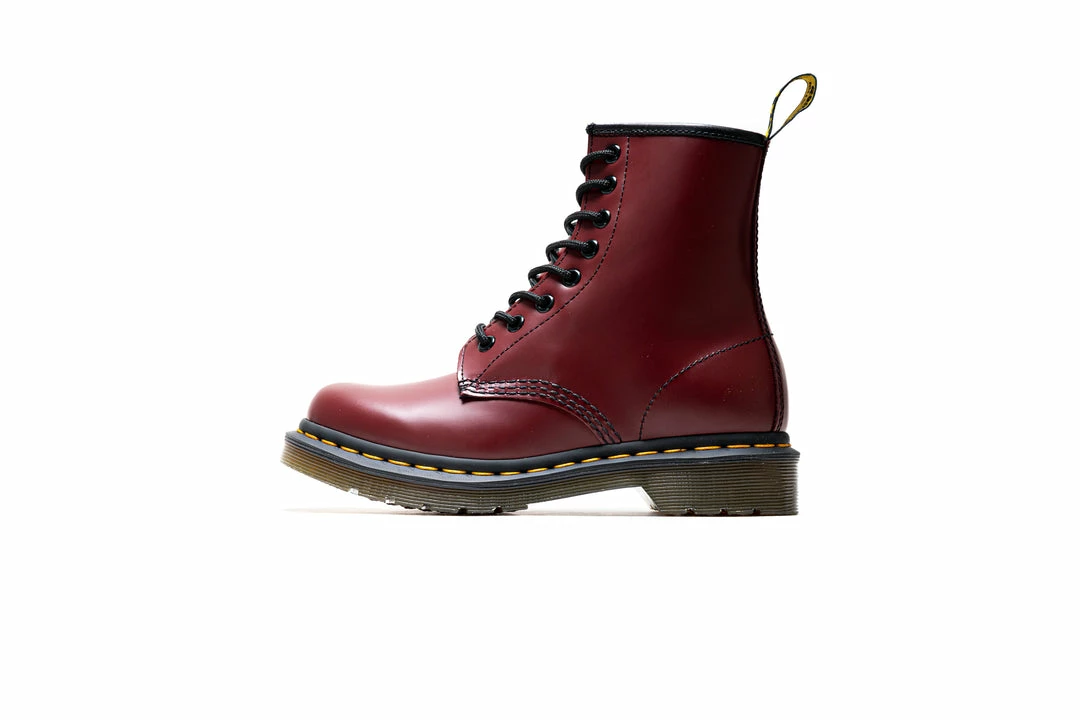 The 1460 is the original Dr. Martens 8-eye boot. Its recognizable DNA looks like this: 8 eyes, classic Dr. Martens Smooth leather, grooved sides, yellow stitching, and a comfortable, air-cushioned sole. The only difference here? A narrower design for women.
