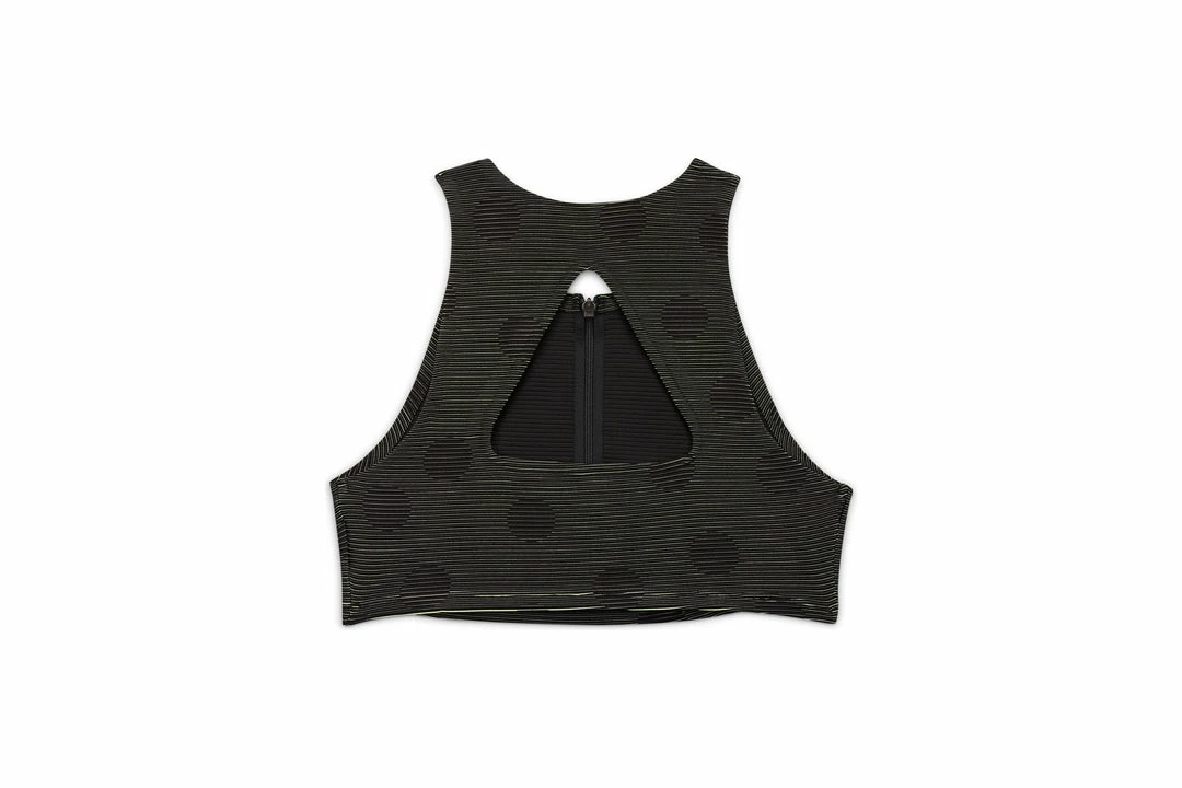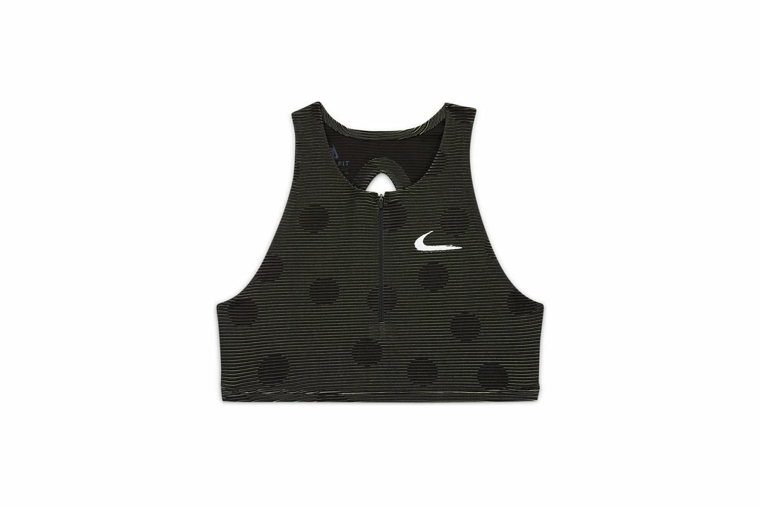 Virgil Abloh continues to explore the gray area between fashion and performance with the Nike x Off-White™ Top. Designed with the multi-sport enthusiast in mind, this 2-in-1 crop top uses some of the same materials found in Nike Track and Field uniforms. Each layer has triangle cut-outs that help keep the air flowing.